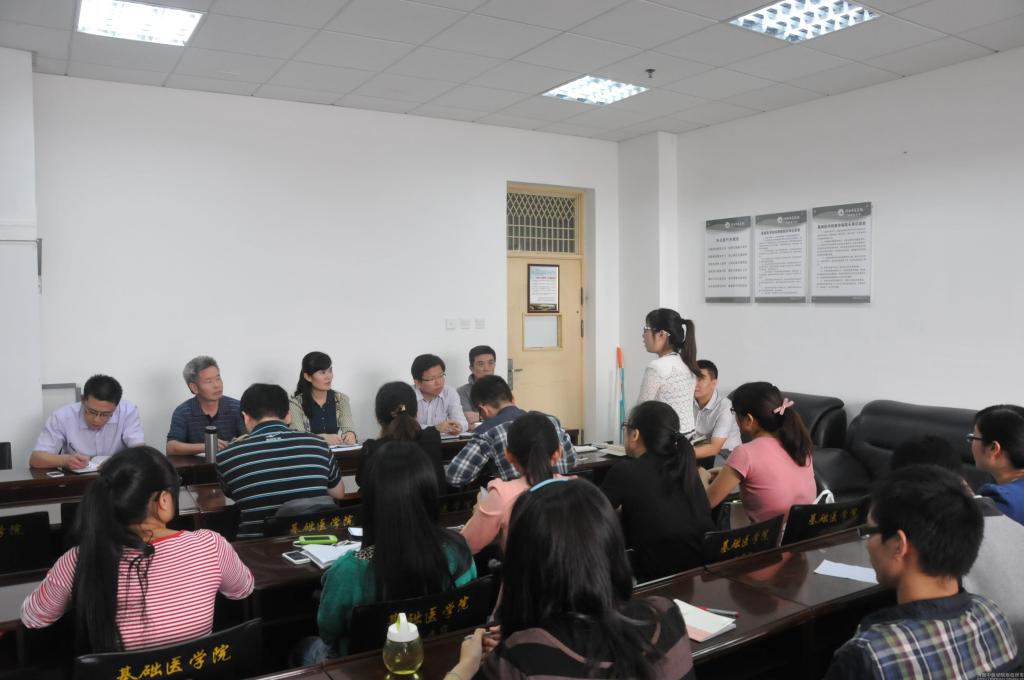 座谈会上各实习组长分别总结了各实习点的阶段实习情况,谈了实习中的感受及心得,并提出了目前面临的突出问题和困惑。申杰教授及李新民博士结合各专业的培养目标和教学计划,逐一分析并解答了同学们专业上的困惑。朱平生副书记强调了实习纪律,要求同学们处理好实习与考研之间的关系,处理好与带教老师、实习单位间的关系。曹姗副院长传达了本学期基础医学院实习检查领导小组对实习点开展检查的主要精神。