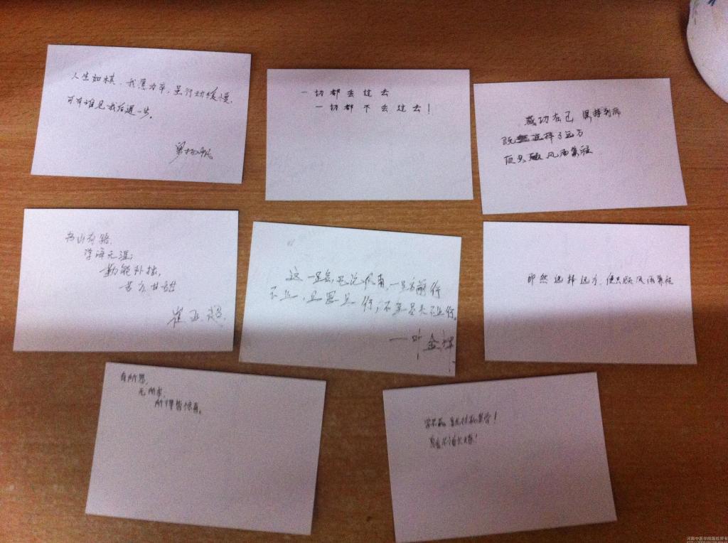 作为本次系列活动的序幕,基础医学院组织全体新生于9月16日中午在新校区南门外开展了入学留影活动。在学工办全体老师和新生亲切合影后,学生会宣传部为每一位2013级新生拍摄了入学纪念照。17日中午,学院组织全体新生在冲印好的照片后面写上了自己的新生宣言。这些宣言热情澎湃,彰显青春活力,展现出了咕咕番 2013级新生积极向上的精神面貌。
