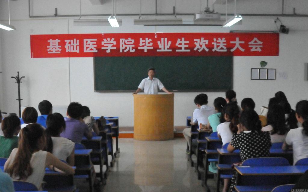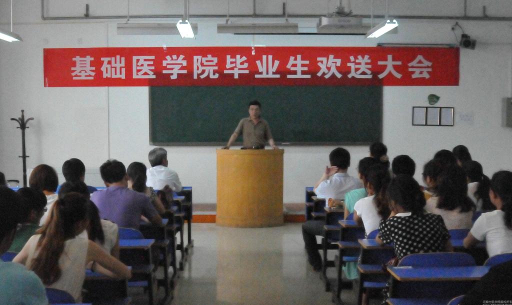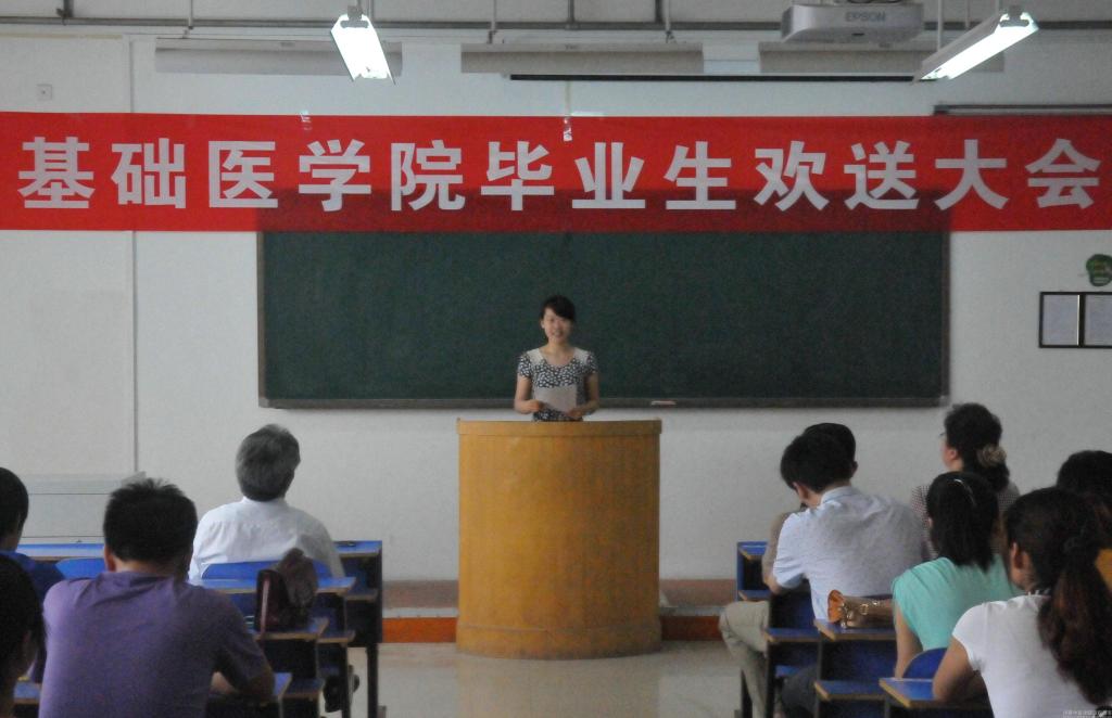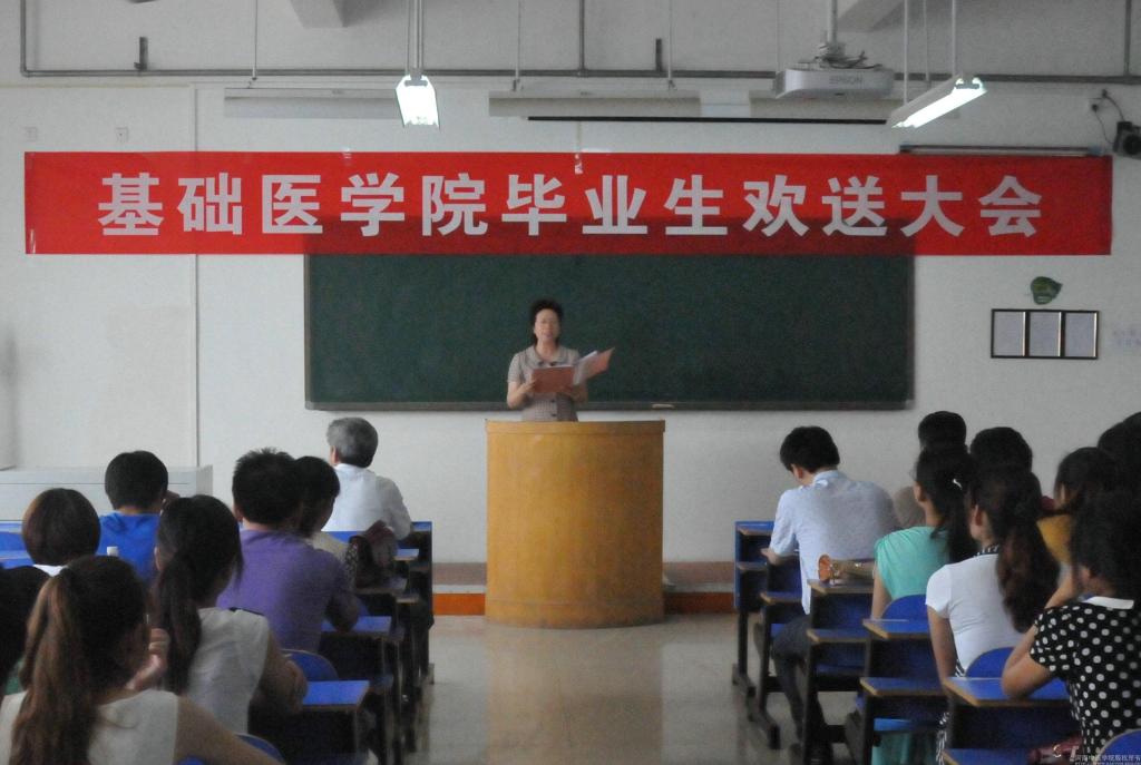在毕业生告别母校之际,为祝福莘莘学子圆满完成学业、扬帆远航,基础医学院经认真筹备,于6月26日上午,在新校区举行2013届毕业生欢送大会。基础医学院詹向红院长、党委马相奇书记、曹珊副院长出席会议,基础医学院党政办、教研办、学工办工作人员、预防医学学科老师和2013届全体毕业生参加会议。会议由朱平生副书记主持。