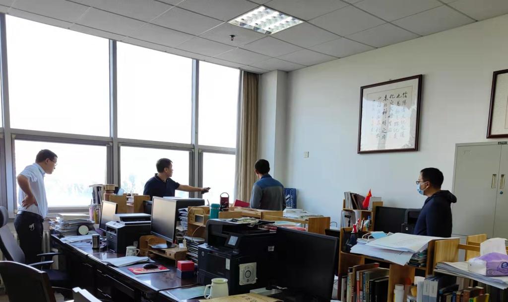 学院党委副书记徐里陪同学校保卫处消防科工作人员对学院前期办公室电路改造情况、所在区域消防设施进行重点检查,确认符合消防安全要求。随后副书记徐里带领学院党政办老师逐一对学院各教研室、办公室进行安全隐患排查,对存在私拉电线、物品排放不规范、卫生差的情况,进行现场指导,现场整改。