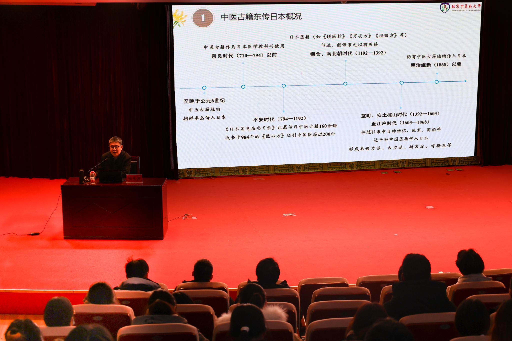杨东方教授以“东亚汉字文化圈”为切点引入中国古籍《御药院方》东传日韩的概况,并详细介绍了中日韩自古以来的中医古籍交流和《御药院方》的相关内容,让师生对“中医古籍的东亚环流”有了初步认识。而后杨教授又发散至《御药院方》分别在日韩的传播与影响、17世纪重新传回中国的历程以及学者们为传承该古籍所做出的重要贡献,让师生们体会到中医古籍环流所带来的巨大影响力。讲座最后互动环节杨教授对师生们所提出的问题一一进行解答。