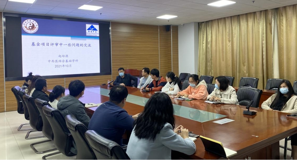 医学院中西医结合基础学科赵培源博士作为特邀嘉宾出席了研讨会,他结合国家自然科学基金委“四位一体”的资助格局,围绕申报书撰写过程中需要注意的关键问题,从科学属性分类、专业领域选择、形式审查要点、评审工作安排等方面与各位青年博士分享了经验与体会。