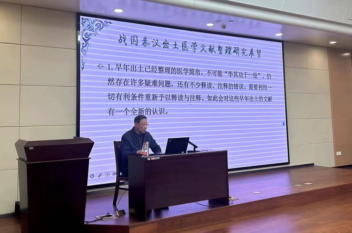 张如青教授向师生们介绍了简、帛的定义、特点以及简帛时代的时间界定,并对近现代现世的简帛文献的发现、整理、校对等进行讲解,使师生们对简帛文献有了初步认识。其后,围绕近年我国出土的战国秦汉简帛医书出土详情、所载先进治疗思想和手段以及不同简帛文献间相似方药的传承脉络作详细阐述。
