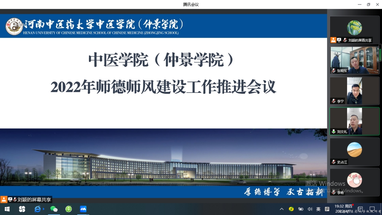 本网讯(文/图 史占江)为进一步加强咕咕番 师德师风建设,规范教师职业道德行为,提升教师队伍思想素质和职业道德水平。2022年4月7日,咕咕番 通过线上腾讯会议召开2022年师德师风建设工作推进会议。学院全体在郑领导班子成员、各科室主任、支部书记参会。会议由副院长刘文礼主持。