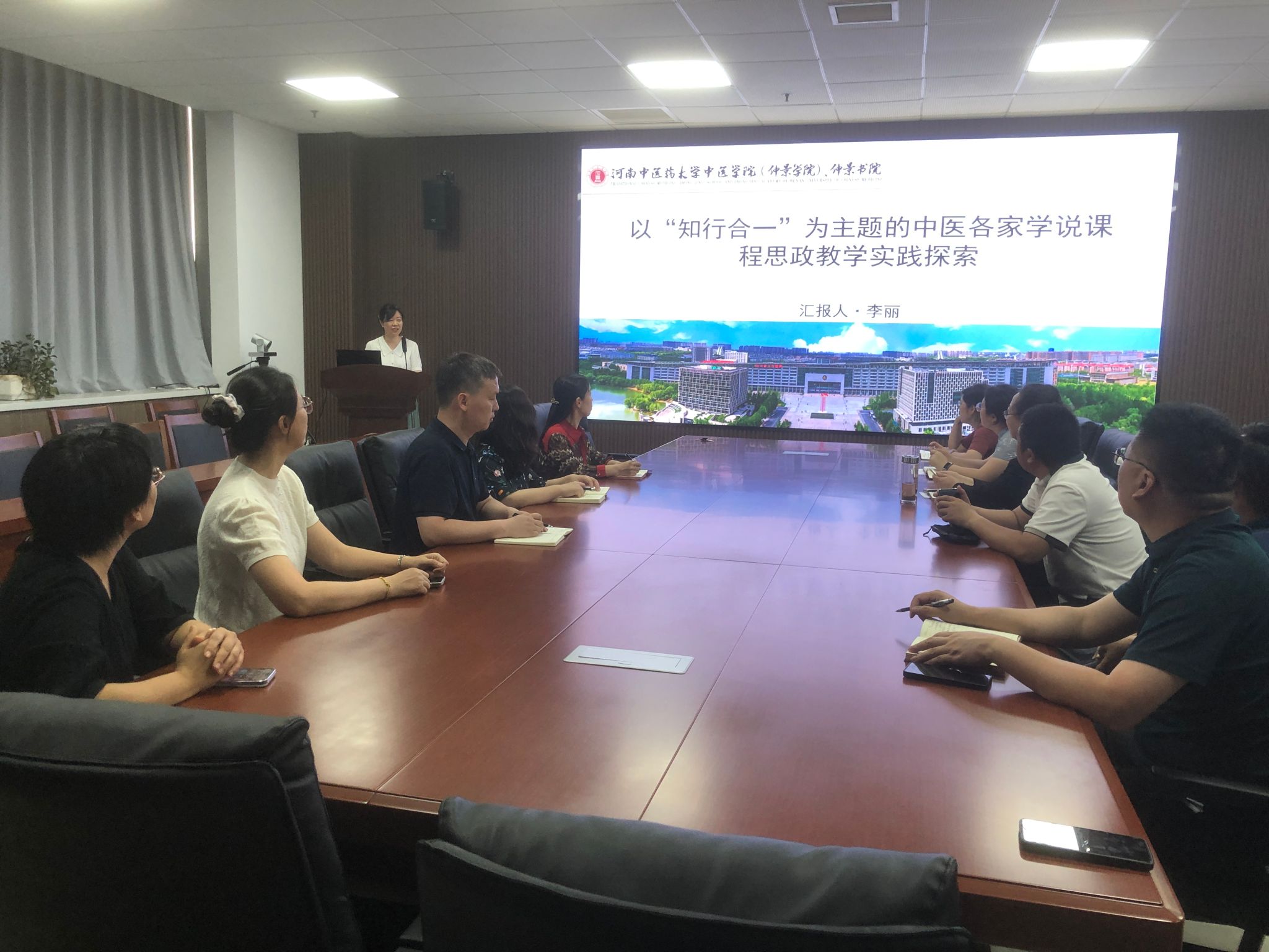 本网讯(文/华金双 图/邵文雪)为持续深化课程思政内涵建设,深入营造良好育人氛围,咕咕番 于2024年5月31日举行了2024年第一期课程思政工作坊。活动邀请各家学说教研室主任、《中医各家学说》课程思政样板课程负责人李丽副教授做了题为“以‘知行合一’为主题的中医各家学说课程思政教学实践探索”的交流报告。咕咕番 副院长刘文礼及各教研室教师代表参加了本次活动。活动由教学办副主任华金双主持。