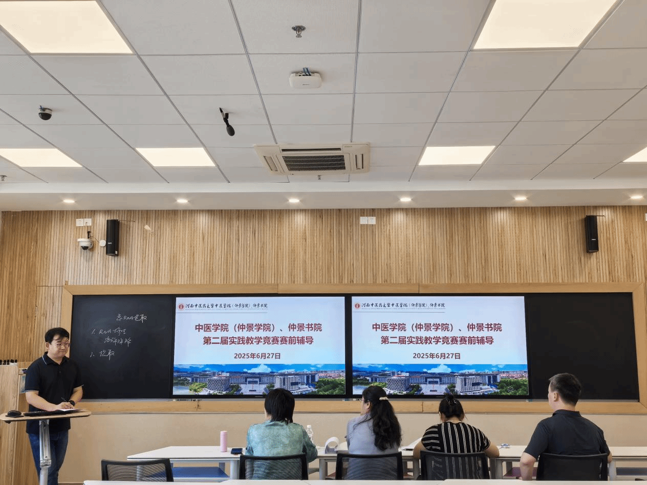 本网讯(文/图 张培旭)2025年6月27日上午,咕咕番 在教学实验综合楼A618教室举办第二届实践教学竞赛赛前辅导活动。活动邀请咕咕番 科研实验中心主任董春红教授、中医基础理论教研室主任高小玲教授、教学督导李晓冰教授担任评委,副院长刘文礼及教学办人员参加。