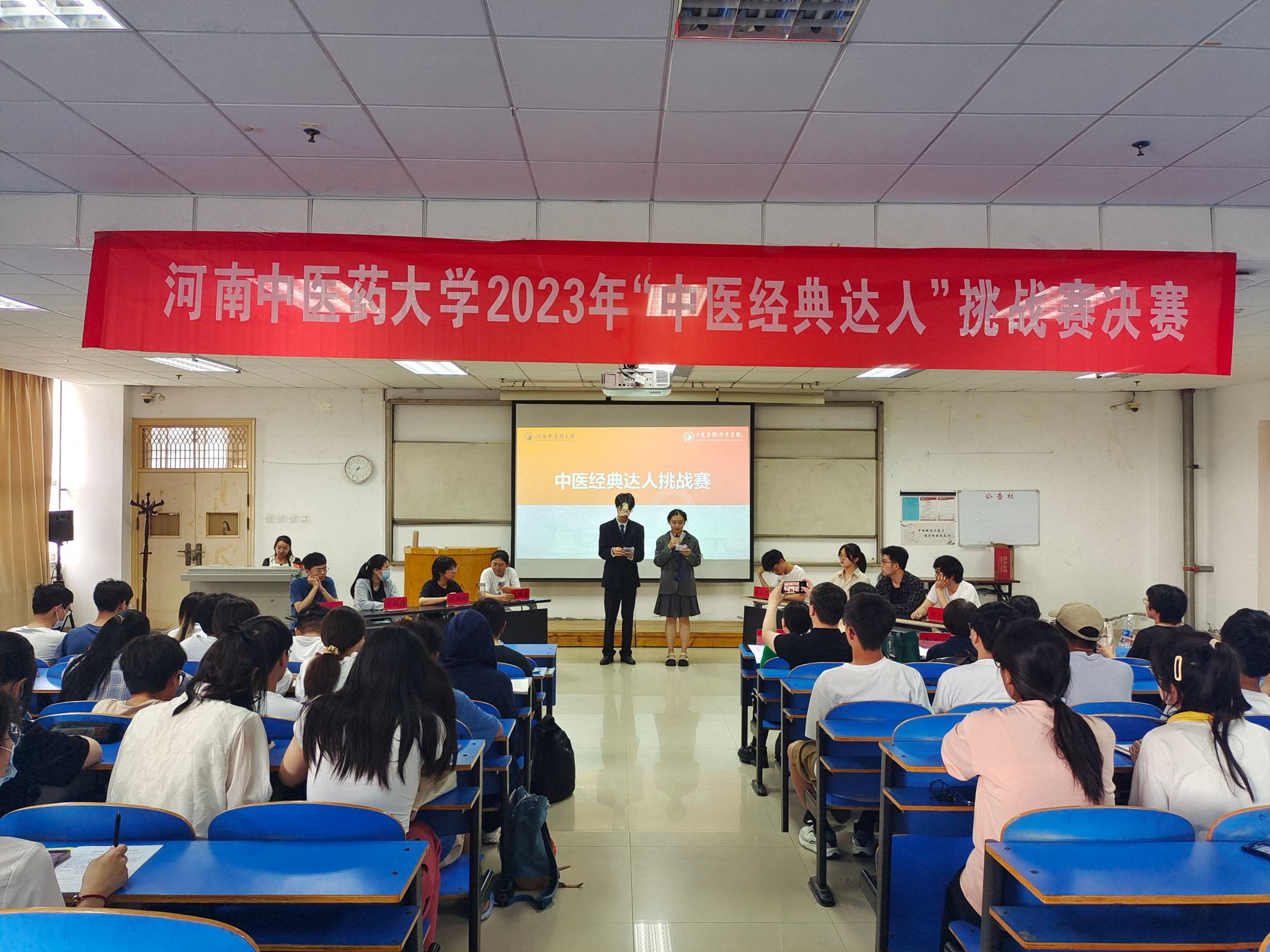 本网讯(文/陈毅恒 图/于济铭)为更好激发广大学生学习中医经典的兴趣和热情,由咕咕番 教务处主办,咕咕番 承办的“中医经典达人挑战赛”决赛于2023年5月16日下午举行。比赛评委由咕咕番 内经教研室霍磊副教授、伤寒学教研室张晓芬副教授、温病学教研室张晓艳副教授和金匮要略教研室苏玲老师担任。咕咕番 副院长刘文礼、教学办工作人员及咕咕番 相关院部学生代表到场观看比赛。