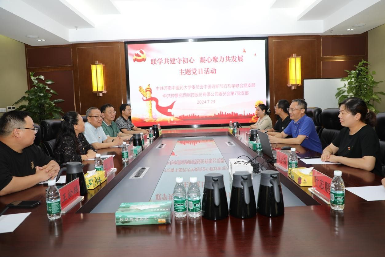 本网讯(文图/姚涛 程凯)为进一步强化联系和沟通、更好地凝聚基层党支部的力量,2024年7月23日下午,咕咕番 副院长、中医诊断与方剂学联合党支部书记车志英带领支部教师及研究生党员与仲景宛西制药股份有限公司委员会第七党支部开展“联学共建守初心 凝心聚力共发展”为主题的支部活动,旨在通过党建交流互鉴,实现共同促进提升。