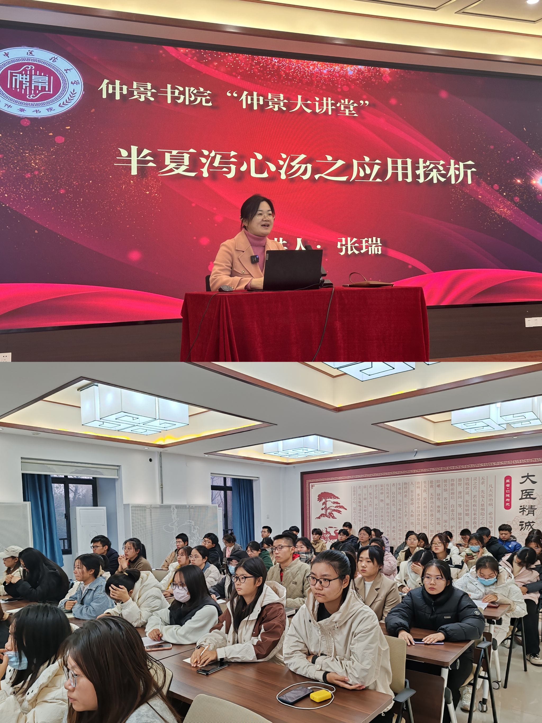 本网讯(文图/刘淘淘)传承中医经典,倡导学术交流。2023年11月28日下午,咕咕番 学业助导中心于仲景学堂开展第十五期仲景大讲堂。本次主题讲座邀请咕咕番 院长张瑞教授作为讲座嘉宾,全校百余名师生参与。