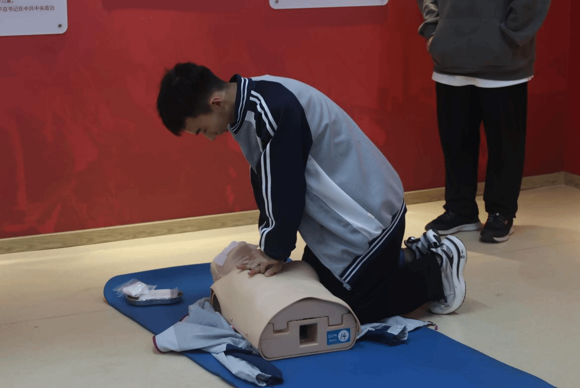 活动共设置安全急救培训、消防安全知识宣讲、消防疏散逃生演练、消防器材实操四个部分。最先开始的急救培训在仲景社区活动室拉开帷幕,学校护理学院牛鹏老师详细讲解了细介绍了心肺复苏、海姆立克急救法、AED的使用等急救知识和技能。同时,培训还采用情景模拟、实操演练等教学方式,让同学们实际操作,确保他们能够在真实场景中迅速、准确地应用所学技能;随后在仲景学堂,河南省应急救援协会安全专业委员会教员于欢波老师结合典型案例、图片和视频资料,深入浅出地讲解了预防火灾和消防安全等各项知识,全面介绍了火灾成因、应对措施、初期火灾的扑救方法以及火场逃生技巧等,并对常见消防器材的正确使用步骤做了细致的讲解和演示;消防疏散演练在仲景社区楼道内有序开展,同学们闻令而动,按照预先制定的应急疏散预案,迅速沿着安全通道指示标识排成一字队形、低头弯腰姿势安全撤离宿舍楼;最后,消防器材实操在学校保卫科老师的指导下进行,参训人员逐一进行灭火器实操,确保每一名参训人员能够熟练掌握灭火器材的使用方法及灭火技巧。