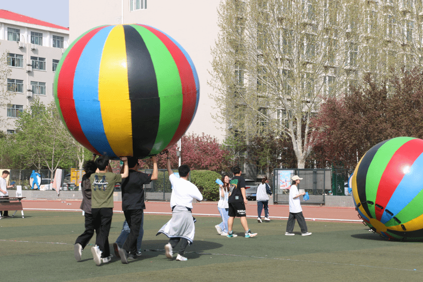 本次运动会结合“一站式”学生社区建设要求,以社区体育节的形式展开。赛事方面,设置“两人三足”“六方拉力赛”“旱地龙舟”“运转乾坤球”等11项趣味项目,涵盖协作、竞技与智慧比拼。为突出体育节特色,运动会现场设置“体重管理”主题,引导学生科学健身,管理体重。活动现场氛围热烈,欢声笑语不断。