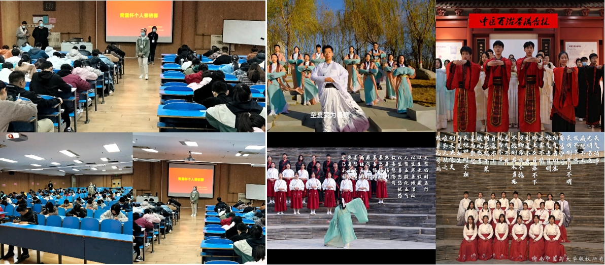 本次决赛分为个人赛和团体赛两种类型。经过初赛选拔,共有10名选手、11个团体队进入决赛。个人赛以笔试考试形式进行,考场上10位同学奋笔疾书,认真作答,充分展现了同学们对中医经典内容的熟识程度。团体赛在悠扬的乐声与郎朗的诵读声中拉开帷幕,各参赛队伍将舞蹈、书法、中医功法等传统文化元素与中医经典完美结合,表现形式多种多样,富有创意,多角度展现了中医经典深厚的文化底蕴,赋予了经典新的活力。经过激烈的比拼,个人赛方面,2018级仲景班裴晨阳等5名同学获得一等奖、2018级仲景班李文雨等5名同学获得二等奖、2018级仲景班李仁起等5名同学获得三等奖,2018级仲景班余世航等5名同学获得优秀奖;团体赛方面,2020级2021级中医5+3合班、针灸推拿医学院二队19级针推本科四班、康复医学院团队获得一等奖,第二临床医学院二队2019级中医二班、第二临床医学院一队19级中医三班、第一临床医学院二队19级中西医一班获得二等奖,儿科医学院、咕咕番 二队20级仲景合班、第一临床医学院一队20级中西医三班、骨伤学院、针灸推拿医学院一队20级针推本科三班获得三等奖。