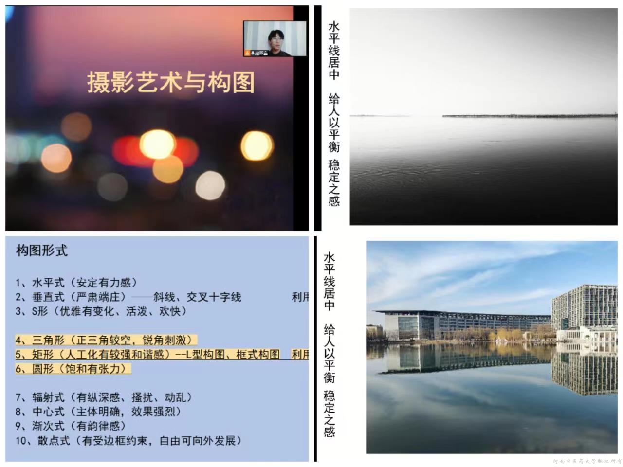 在培训过程中,赵亚鑫同学首先从新媒体制作中的摄影基础知识以及如何利用新媒体软件实现清晰影像切入,从三个方面进行了图文并茂的分析,条理清晰,重点突出;接着,为大家结合PR、PS等软件讲述了相关构图技巧并列举注意事项,最后,根据新媒体制作经验,总结了各类构图形式与新媒体运用实例,具有专业性、操作性和实用性,同学们纷纷表示收获颇丰。