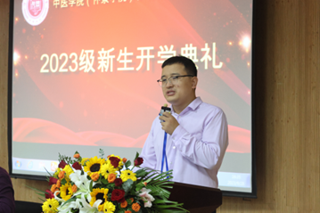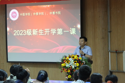 党委副书记徐里以《奋勇前行,做堪当时代重任的青年》为题讲授“开学第一课”。他围绕鉴往知来、立志圣贤、励志成才三方面,并通过对过往之中国、当下之中国、未来之中国的历史回顾和未来畅想,号召全体同学以史鉴今、坚定信念、爱党爱国;以圣明志,传承岐黄、爱校荣校;以勤立学,锤炼本领、堪当大任。